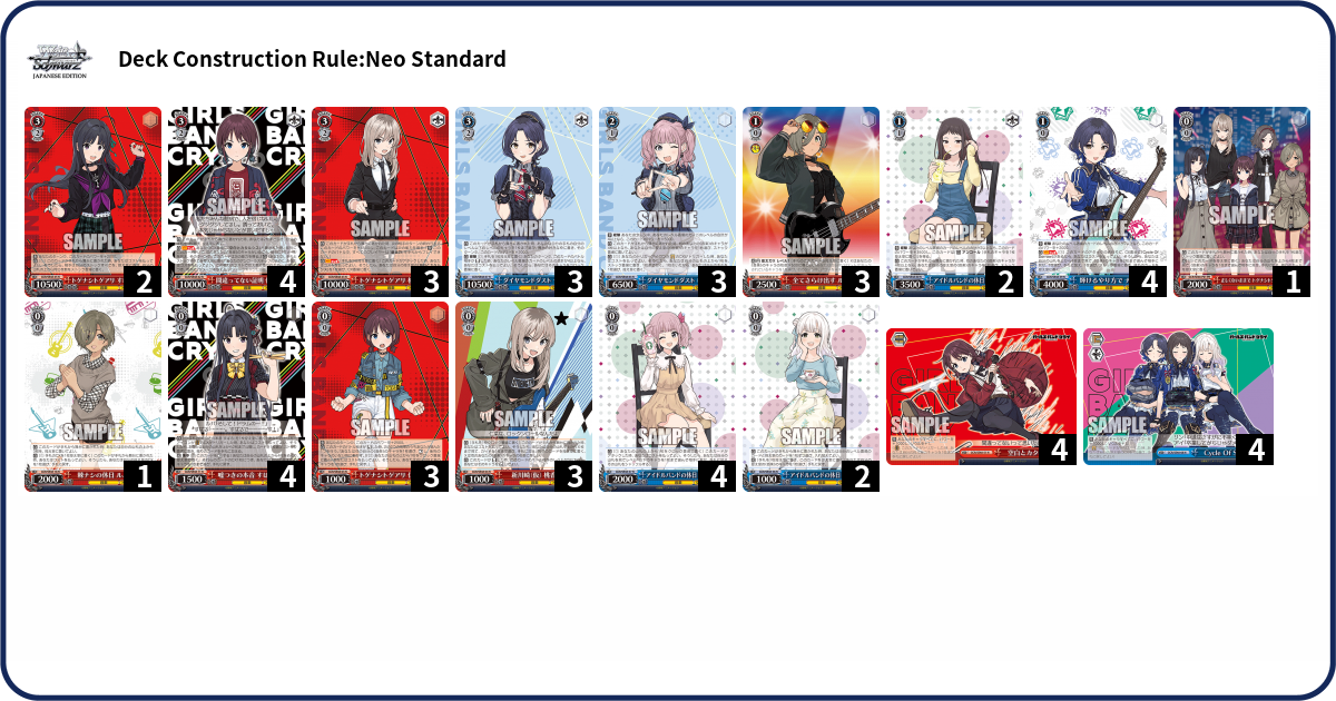 Of course, Girls Band Cry has a TD coming out in a couple months, so there’s a decent chance these decks could change significantly once those cards are added to the pool. But for now, this is what I’ve come up with.