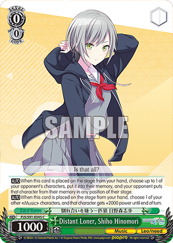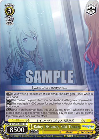 The Mizuki EP is generally a good card, and in particular can dig for a climax or the 3/3 event. It does cost stock, though, so you want to be careful about playing it too much. It’s a 2-of to have a decent chance of seeing it by level 2 (but if you don’t see it, that’s not the worst).