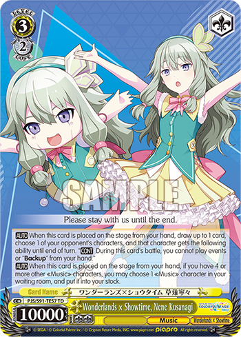 And even if neither of those things happen, it’ll probably at least break even on stock, since you almost always have something you can throw into stock on your finishing turn (like a brainstorm). That alone might be enough to justify it, since the extra power from the level assist can help you get a reverse or two. It can also let you do stuff like play the Nene with a full field (to get the stock refund), then put something into stock (say, a rested brainstorm), then play the combo into the empty spot and rest the Nene for the fumio.