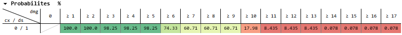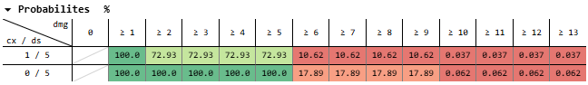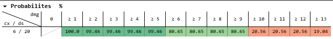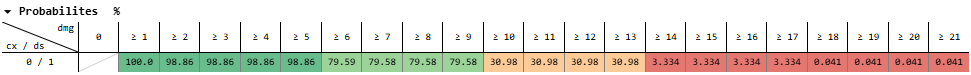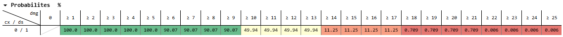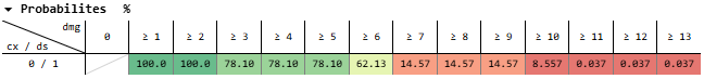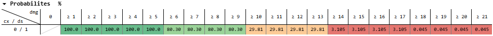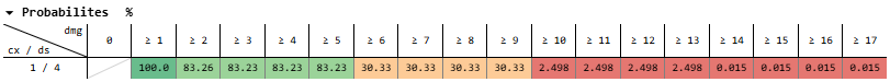 And for dealing 11-13 damage, that’s 50% * 20.90% + 50% * 2.498% = 11.70%
