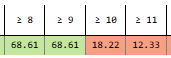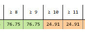 Then for 10 or 11 damage, it’s 24.91% / 5 + 1.838% = 6.82%.