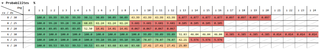 (I’m using this excellent damage probability calculator for these.)