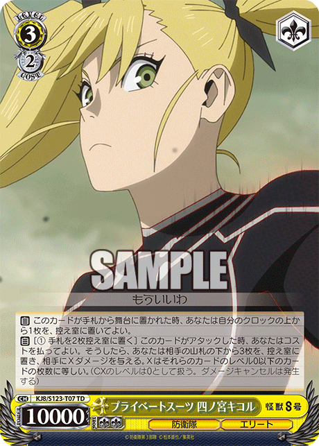 I initially thought this would be a good attacker at level 2, but I ended up finding that it wasn’t really necessary, and I often preferred to ditch climaxes rather than playing them. Also, I tended to want green at level 2 to play Kaiju No. 9, which conflicts with needing red (since yellow was already needed for the event at level 1). It also just doesn’t swing that big, particularly with most of the climaxes in this deck not giving power.